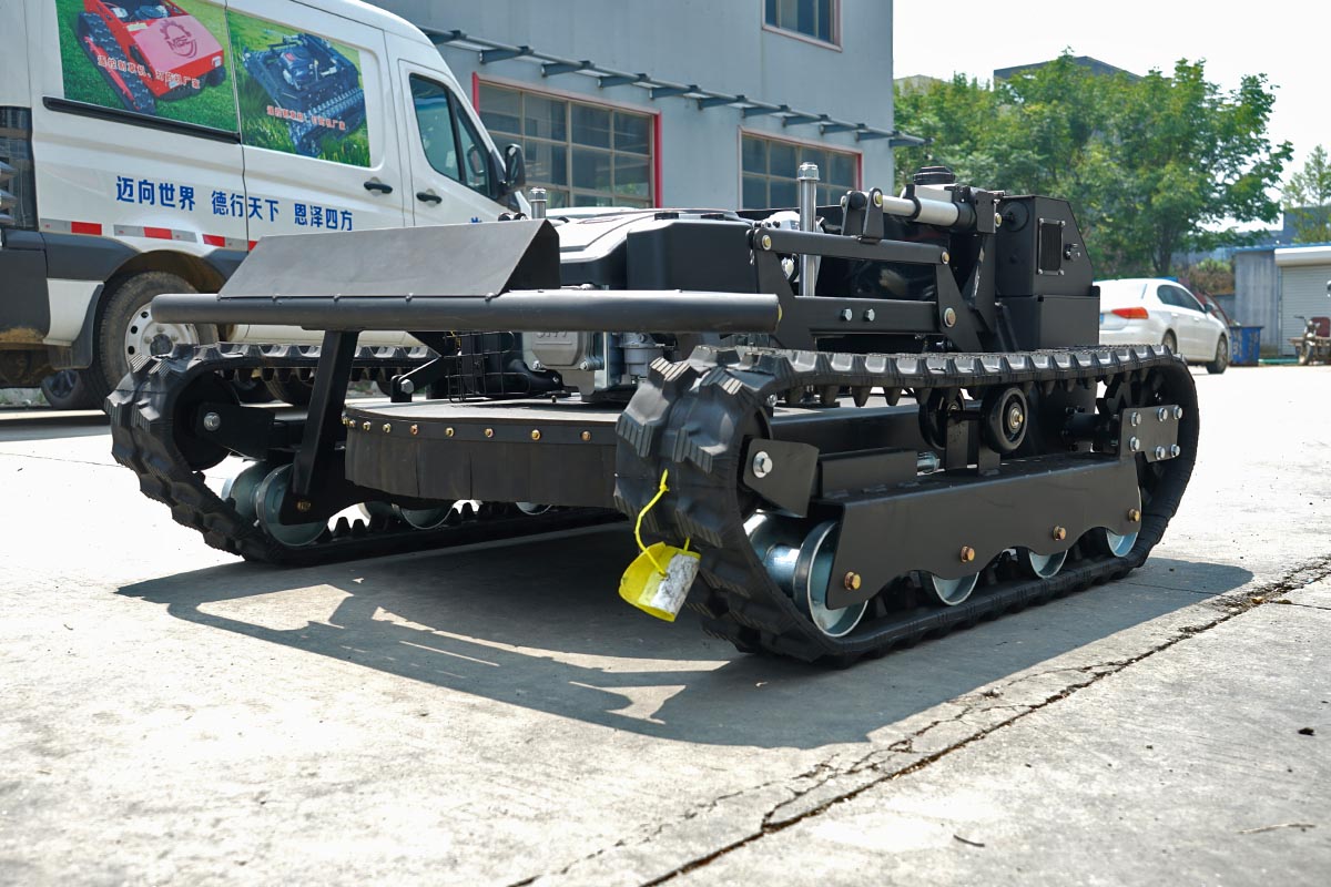 Large lawn and nursery care: in large lawn or nursery, 800mm extra wide mowing width and 2500m2/h working efficiency significantly reduce working time; 1400mm overall length balances the flexibility and operational stability, the crawler walking on the ground is less compression, does not leave crushing traces; the remote control operation can accurately avoid the nursery seedlings, 10mm close to the ground cutting to make the lawn as flat as a carpet, enhance the quality of the landscape. The 10mm close cut makes the lawn as flat as a carpet and improves the landscape quality.