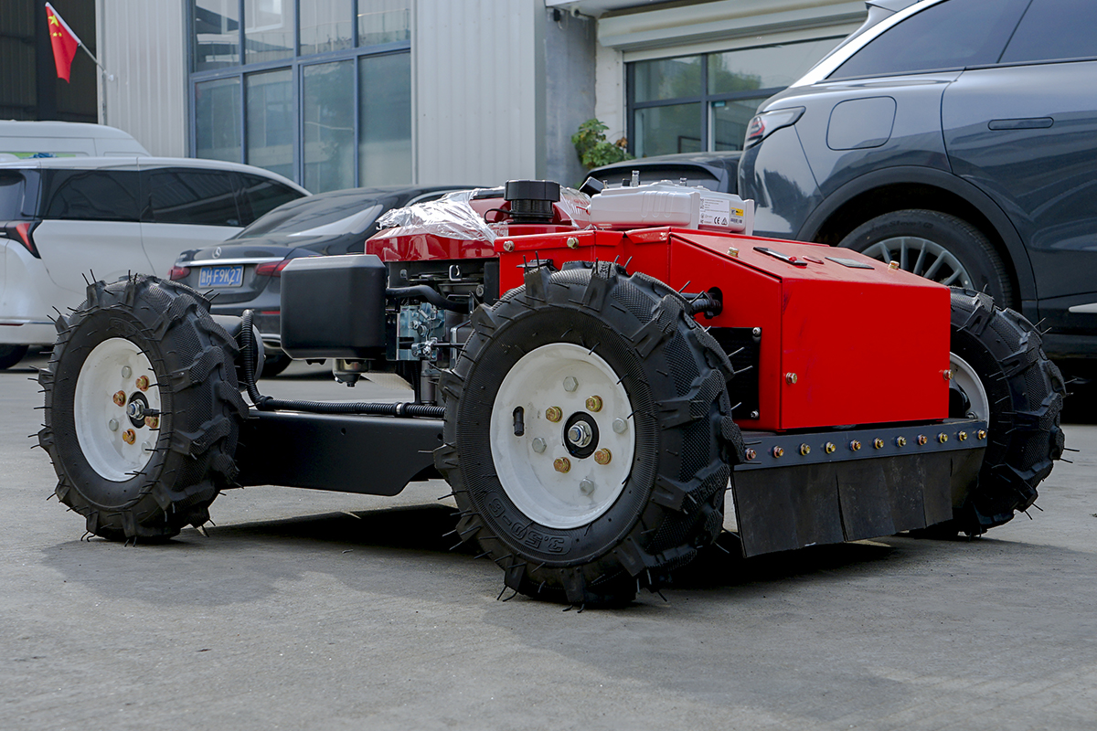 Orchard and Nursery Weeding: When weeding between orchard rows or nursery beds, the 85cm body width allows flexible manoeuvring through tree gaps without damaging young branches. The straight blade head is sharp and durable, precisely cutting weeds without damaging crop roots. A maximum 30° climbing angle handles gentle orchard slopes, while the four-wheel drive provides strong traction for stable operation on muddy or gravelly terrain, reducing the physical strain of manual weeding.