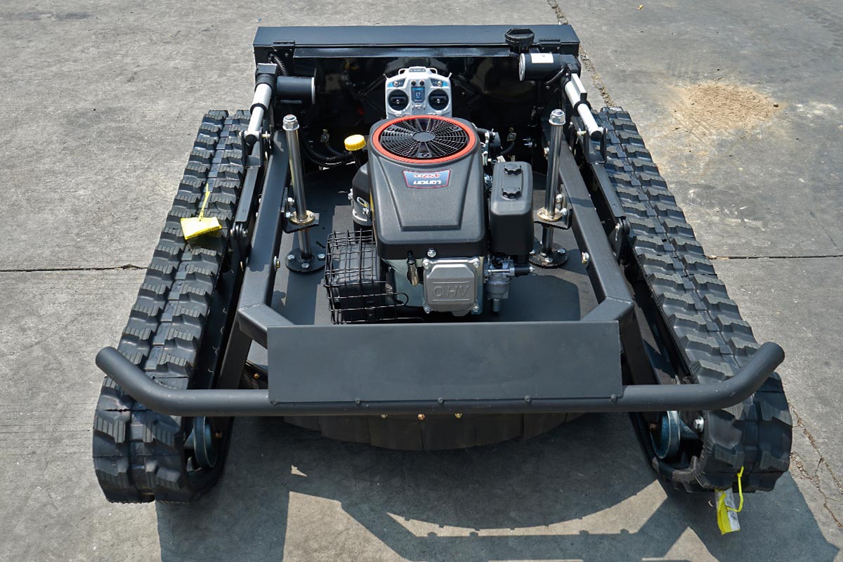 Remote control safety, convenient operation: 200m farthest remote control distance, allowing the operator to stay away from steep slopes, high grass and other dangerous areas, standing in the safety zone can complete the operation, electric start design with one-key start, simple and convenient operation, reducing labor intensity.