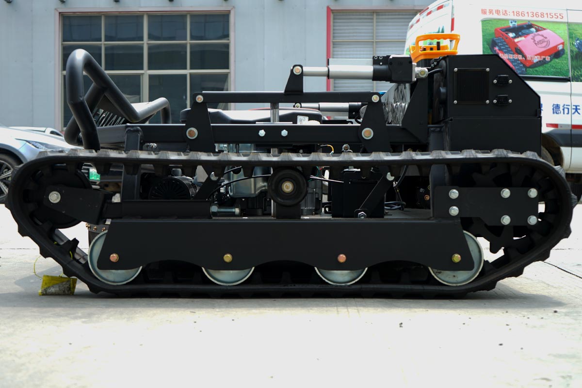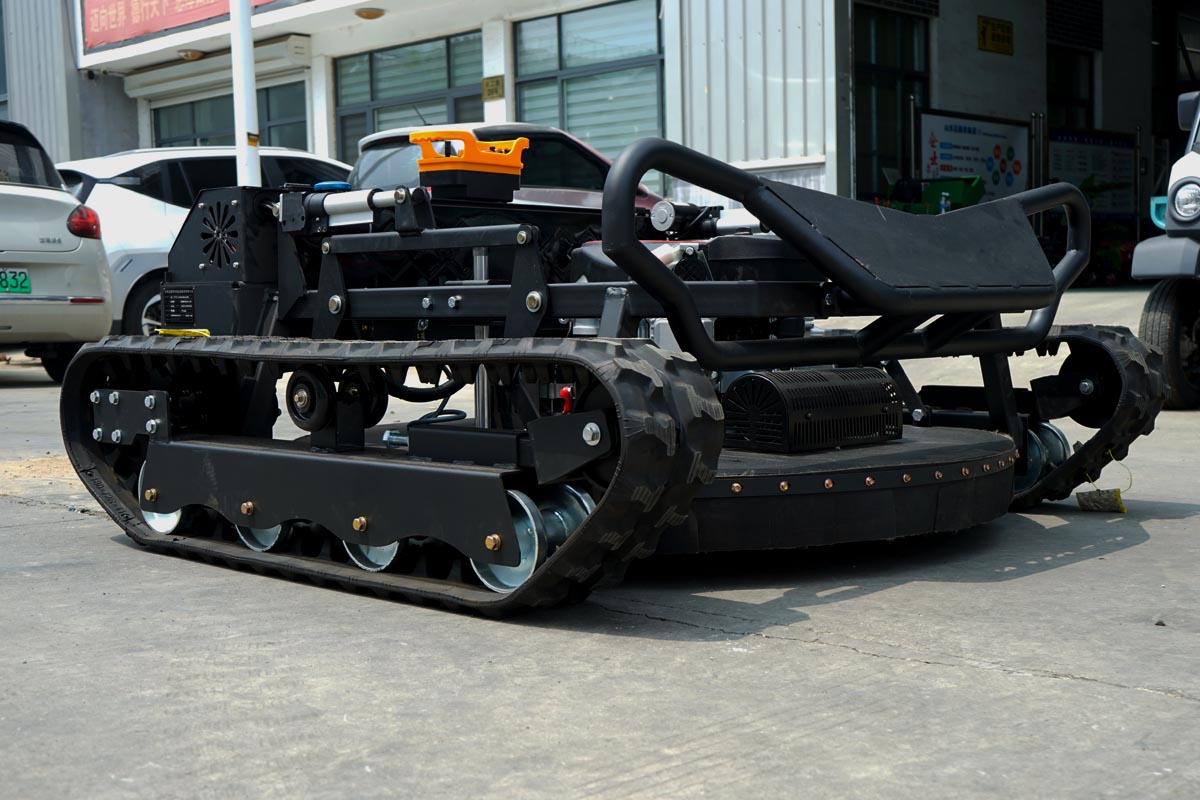 GC-L764-110L off-road track mower is a flagship mower designed for large and complex terrain. 370KG solid body with 1430*1500*700mm off-road structure, durable and flexible. Equipped with Loncin 27ps four-stroke engine, the power is strong and surging, 1100mm ultra-wide mowing width with electric crawler self-propelled design, 70° steep slopes as if walking on the ground, the working efficiency is as high as 5000-6000 square meters/h, 200m remote control operation, for river embankment berms, large-scale photovoltaic power station, ten thousand acres of orchards and other scenarios to provide efficient and safe lawn mowing solutions.