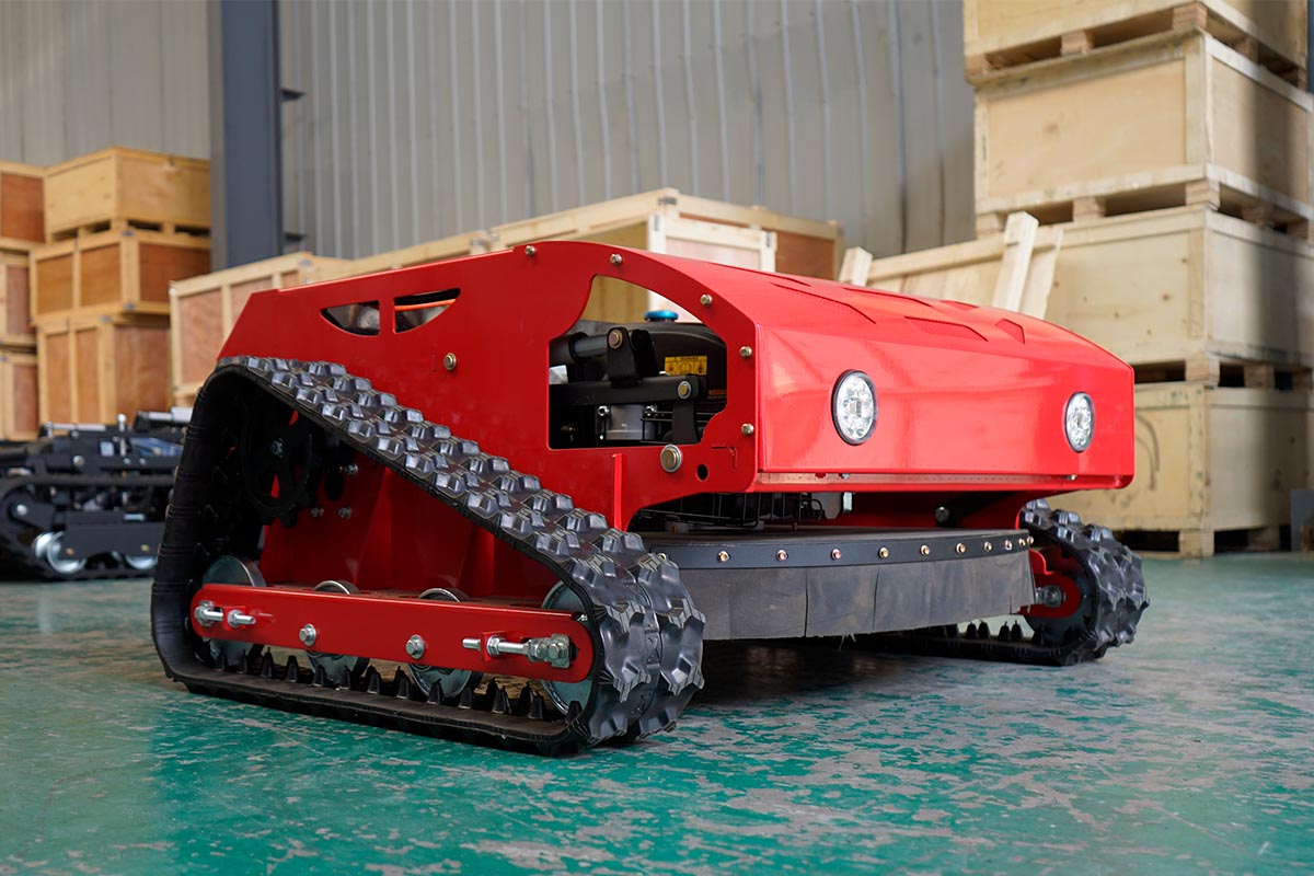 Orchard lawn large area trimming: in the orchard or large lawn, 800mm wide mowing width significantly improves working efficiency and reduces the number of round trips. 1170mm width of the machine body can be flexibly moved between the rows of fruit trees, and the crawler travels without compacting the soil to protect the root system of the fruit trees. 10mm-180mm adjustable height of the cutting platform, which is capable of low-cutting to keep the lawn smooth, and also capable of high-cutting to avoid the orchard weeds from fighting for nutrients with the fruit trees. Nutrients.