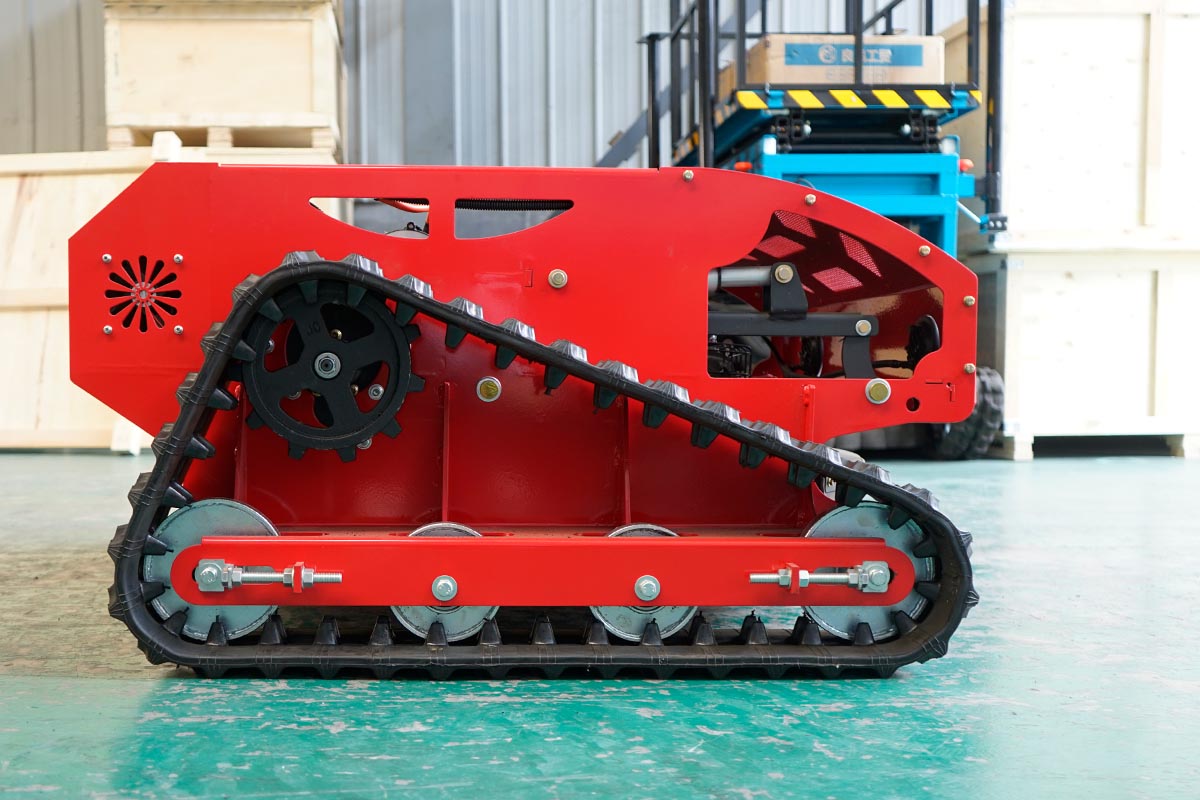 GC-L452-80A crawler mower is an efficient equipment tailor-made for mowing large areas and complex scenarios. 1070*1170*600mm practical body takes into account the flexibility and stability of the operation, equipped with LONCIN/Rato four-stroke engine, power up to 16PS, strong power. 800mm wide mowing width with the design of motorized self-propelled track, supporting 200m remote control operation, 10mm-180mm adjustable cutting table height to accurately adapt to different grass conditions, whether under river bank berms, photovoltaic panels or orchard lawns. It supports 200m remote control operation, and the 10mm-180mm adjustable height of the cutting deck can accurately adapt to different grass conditions, whether it's under the river bank berm, photovoltaic panel, or orchard lawn, it can efficiently complete the mowing operation.
