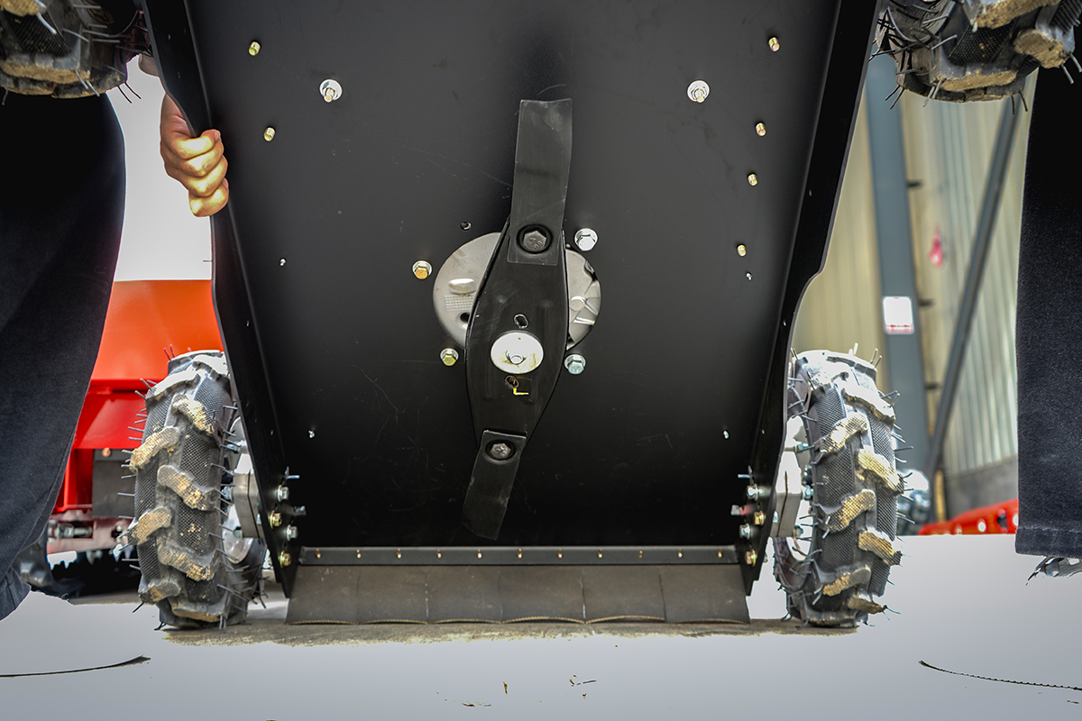 Orchard and Nursery Weeding: When weeding between orchard rows or nursery beds, the 85cm body width allows flexible manoeuvring through tree gaps without damaging young branches. The straight blade head is sharp and durable, precisely cutting weeds without damaging crop roots. A maximum 30° climbing angle handles gentle orchard slopes, while the four-wheel drive provides strong traction for stable operation on muddy or gravelly terrain, reducing the physical strain of manual weeding.