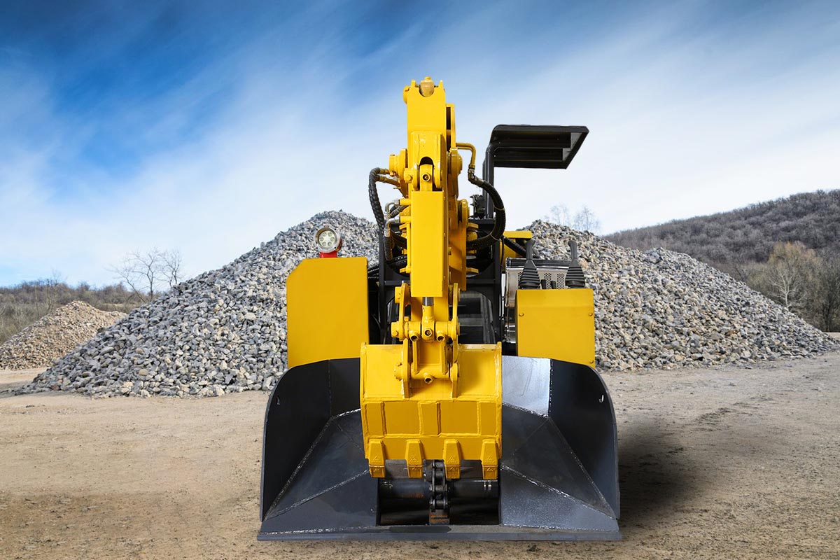 Long tunnel construction: in the face of long-distance, large cross-section tunnel projects, its ≥ 2.3X2.3m section and 1800mm machine height, easy access; ± 50 ° of the maximum slewing angle with ≥ 1700mm digging distance, flexible cleaning tunnel corners of the slag; can be heightened 260mm high clearance and adjustable unloading height, distance, adaptable to different transportation vehicles, to accelerate the efficiency of tunnel slagging. Slag efficiency.