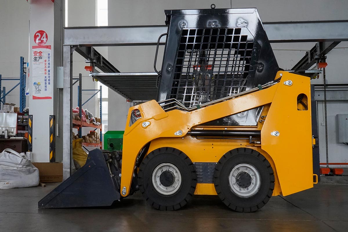 GC-S25L wheeled skid steer loader is specially designed for delicate and small space operation. Optional Leiden 385 or Yanmar 380 engine, respectively output 18.8kw and 17.8kw rated power, three-cylinder naturally-aspirated design, stable and responsive power, to meet the stringent emission standards of Euro 5/EPA, taking into account the high efficiency of the operation and green environmental protection. The whole vehicle weighs only 1200kg, with 390kg rated load, with 0.22m³ bucket volume, it can efficiently complete material handling and site operation in small space, which is a powerful assistant for small-scale engineering scenarios.